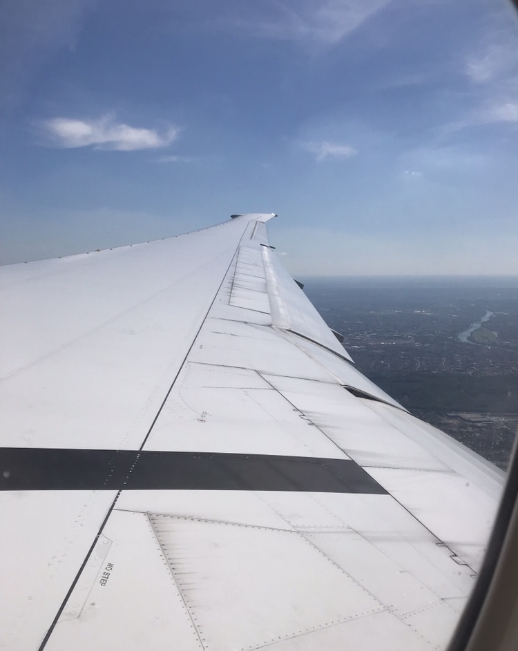 Tout s’est bien passé et nous avons pris l’avion à 10h30 pour les 11h45 de vol prévues. Comme nous partions de jour le vol a été plus long qu’à l’aller. Nous avons enchaîné les films et j’ai pu bien tricoter !